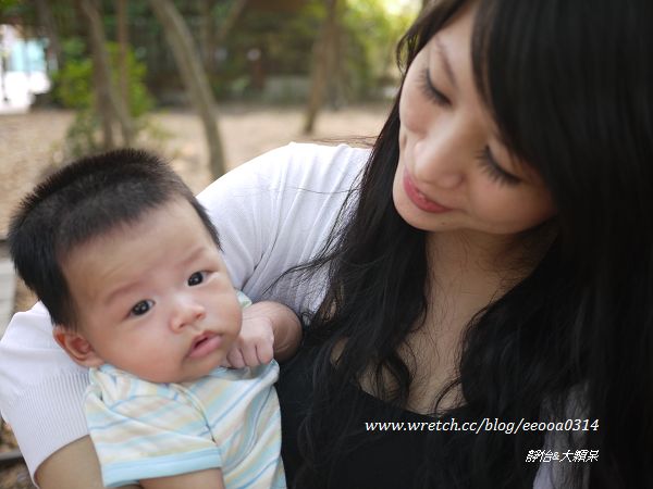 大顆呆拔比只好抱著小恩仔到處亂看看~