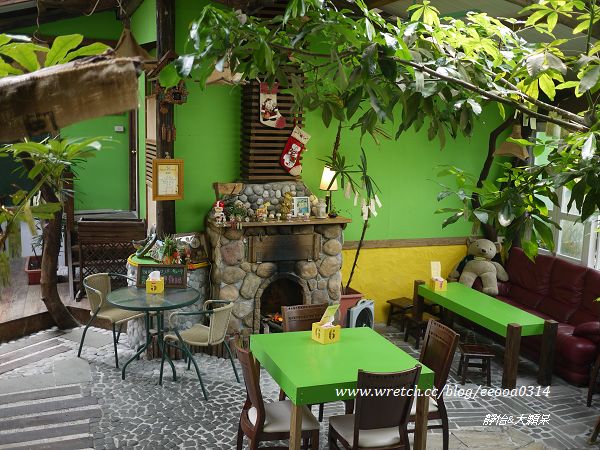 微黃燈光加上枕木桌椅~真是令人放鬆&感覺溫暖