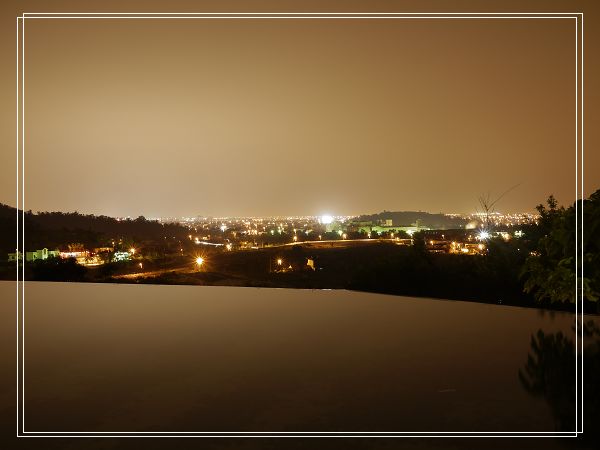 可以俯視蘭陽平原唷,餐廳前也有一大片的水池...