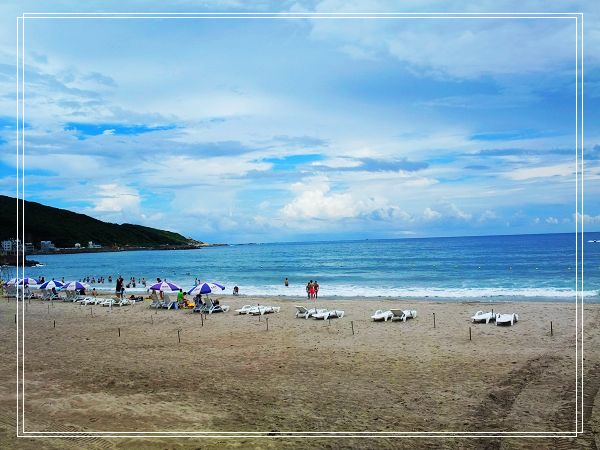 翡翠灣美麗的沙灘...很多人在此戲水玩樂喔~好棒啊!!