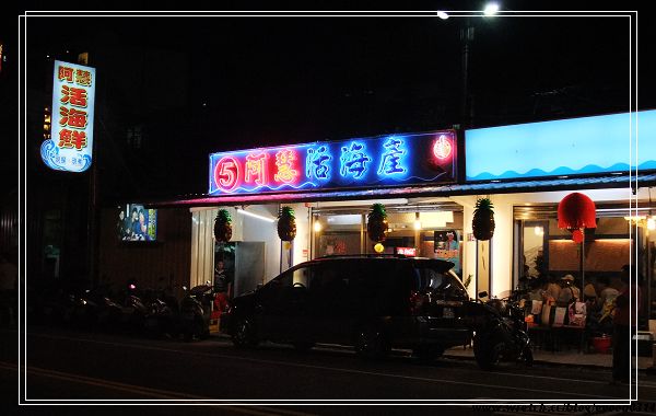 點了以上五樣菜~"綜合生魚片,炒青菜,炸蚵,燴海鮮,炒螺肉"等五樣