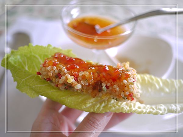 再配上特製的沾醬+新鮮生菜一起入口