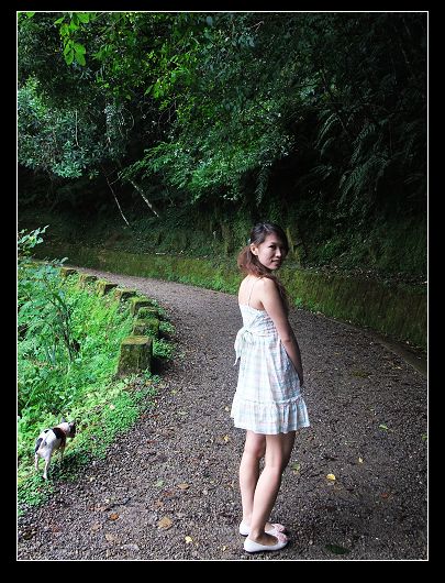 不過因為碎石路對牠的"小肉墊"而言,還是太犀利,所以牠一直走"山谷"旁的水泥路