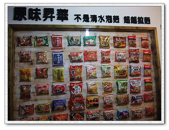 一進來就可看見上頭寫著"原味昇華 不是清水泡麵 超越拉麵"的各國泡麵