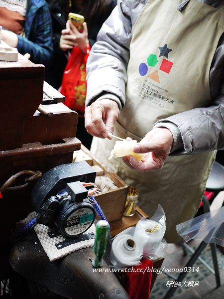 首先先揉糖團、放入模型裡(可以指定造型)、再吹糖...就完成啦