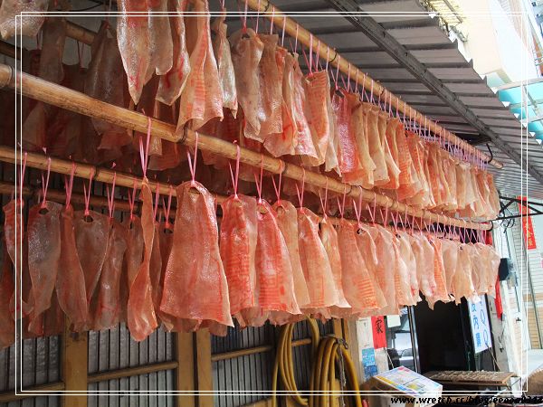 我們走在人擠人的路上,一整條路上好多販賣烤魷魚的攤販唷