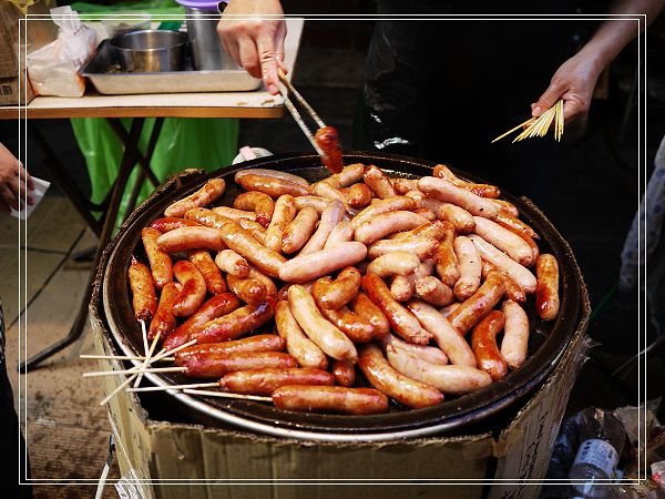 哇~這大鍋炒的香腸倒是這一次看到耶...好特別