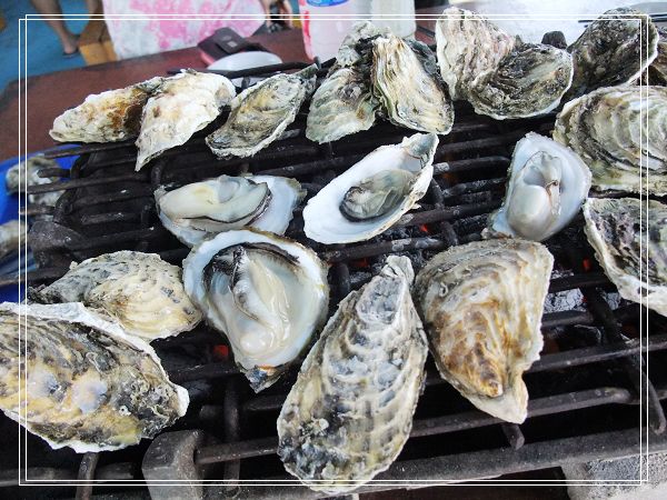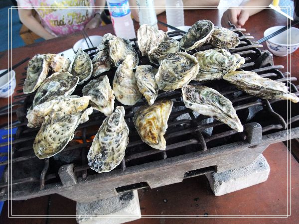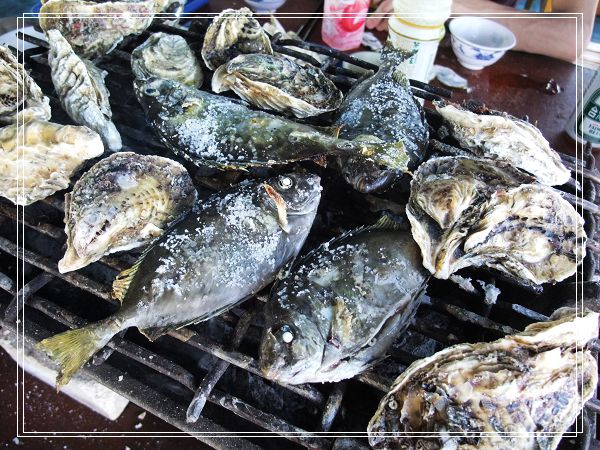 玩累了~船家升好碳火,鮮美的碳烤鮮蚵讓人垂涎