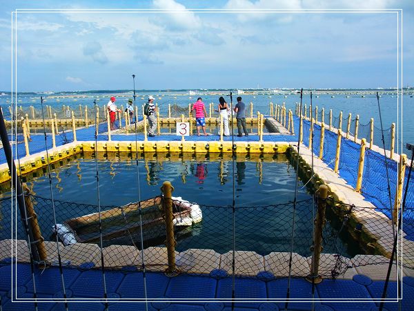 人手一竿親自餵食兇猛的海鱺,來場人與海鱺鬥智的拔河大賽