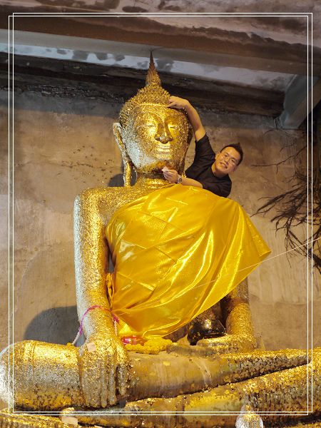 可以在大佛全身各處貼上"金箔"<拜拜用具有附>
