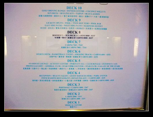 房間門口旁,服務生每天會夾一份船上育樂時間表喔