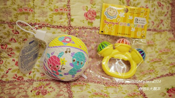球是附在"贈品袋"裏頭的,手搖鈴則是樂雅樂上課時所發送的!!