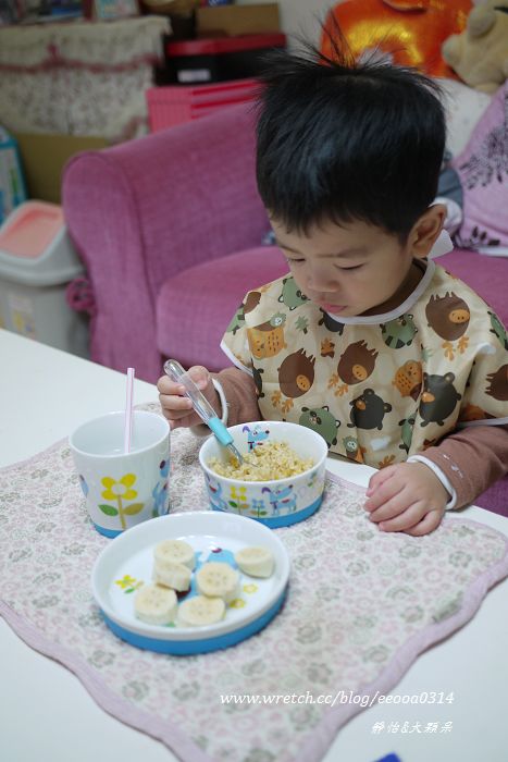 我們家小恩仔不愛吃飯飯所以使用可愛的餐具來增加他的食慾是必需的