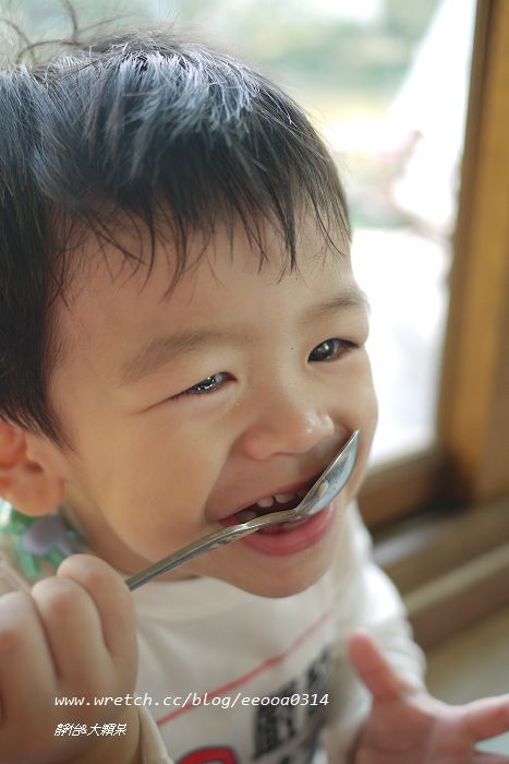 是說小恩仔有時還是很不習慣使用湯匙吃飯啦(拿得不是很穩)