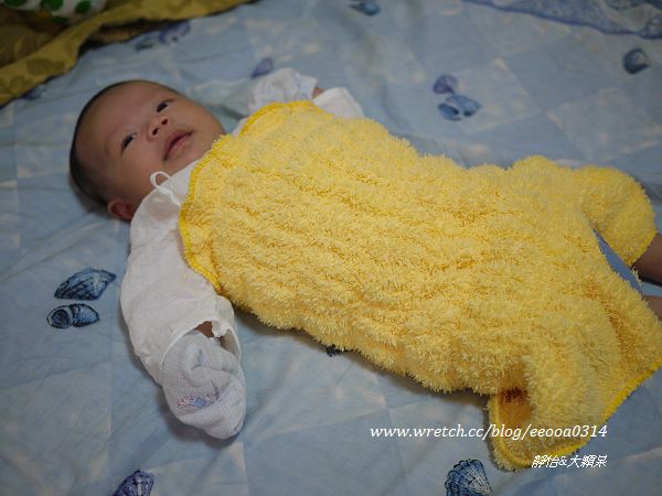 (其實也可以把小手手一起套入肚圍裡,這樣baby會更有安全感唷)