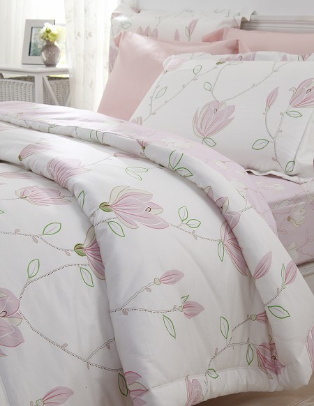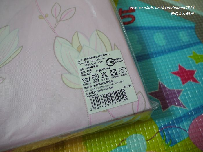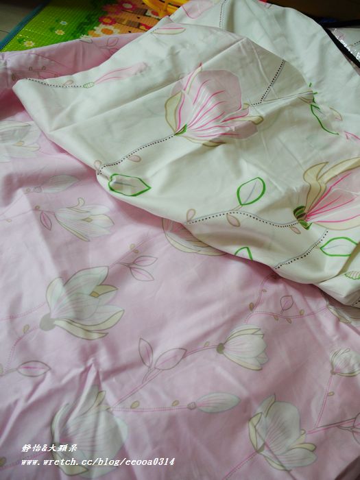 採用的是AB花色組合~枕套為白底粉花,床包為粉底白花