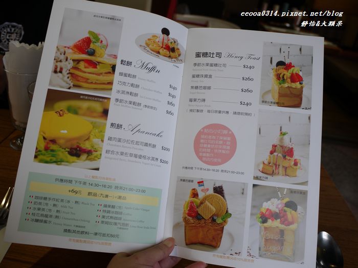 原本好想點右下角的"蜜糖珠寶盒"~但後來點了煎餅!(兩樣都好吸睛)