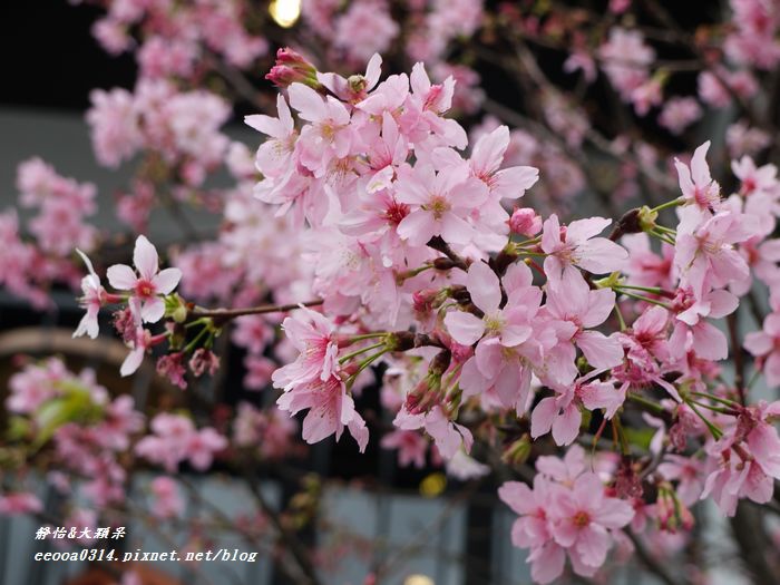 前方的小小庭院種植了兩株櫻花樹~正盛開中呢!