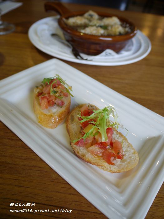 上圖就是主廚推薦麵包~烤的酥脆的法國麵包,上面加了番茄等調味!