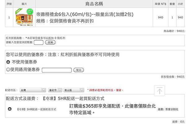 而且只要是在台北市的特地區域裡購買365元就免運費