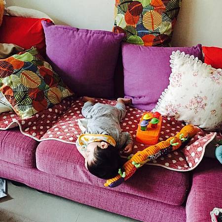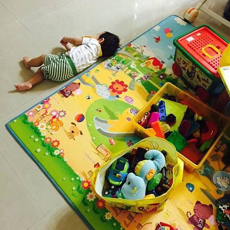 玩一玩玩具就直接躺在地上~愛睏