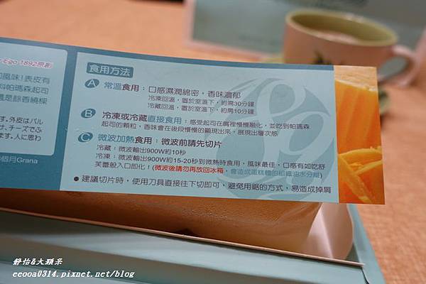 冷凍或冷藏直接食用,可以吃到帕瑪森起士的顆粒,香味會慢慢顯現,是較有層次的口感