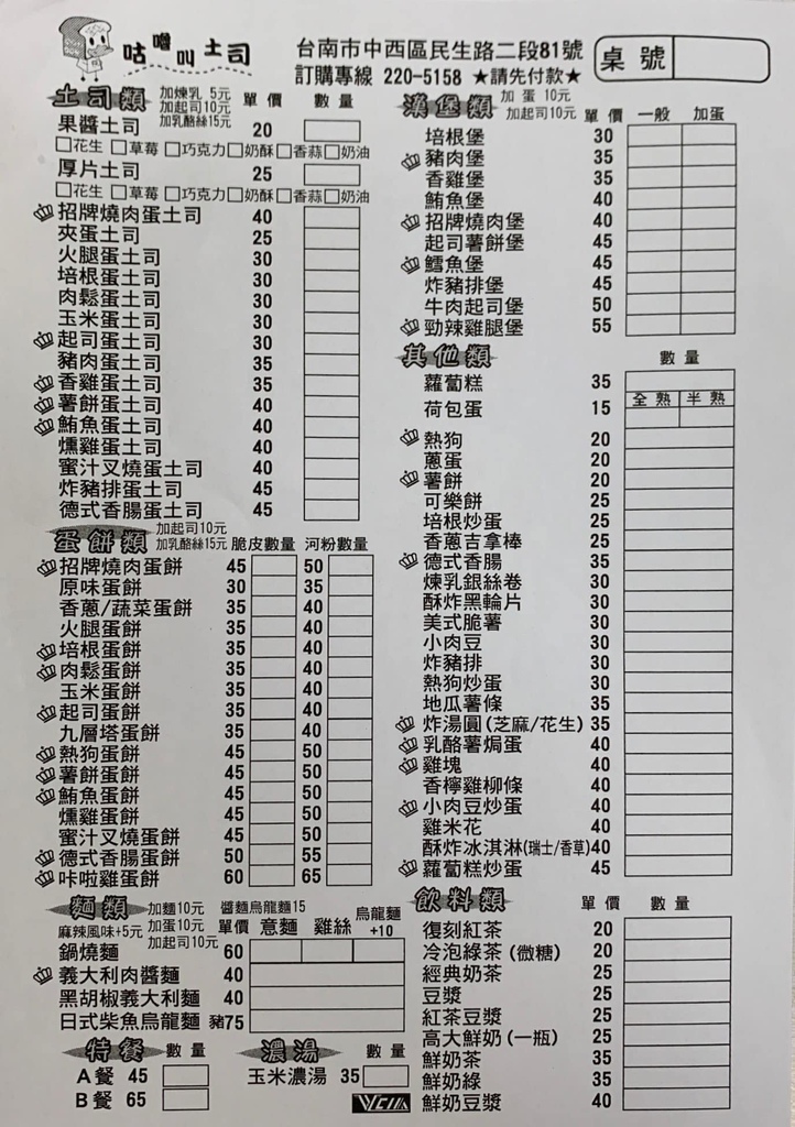 主要提供土司、蛋餅、漢堡、炸物、麵類及飲料,價格算是一般,沒有特別便宜,不知道點什麼的話可以點前面的皇冠圖案的,代表招牌