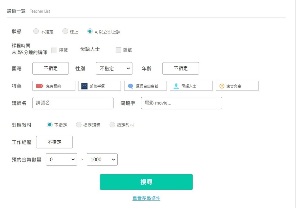 可以依照自身喜好設定條件搜尋講師,就能更快速找到適合的講師
