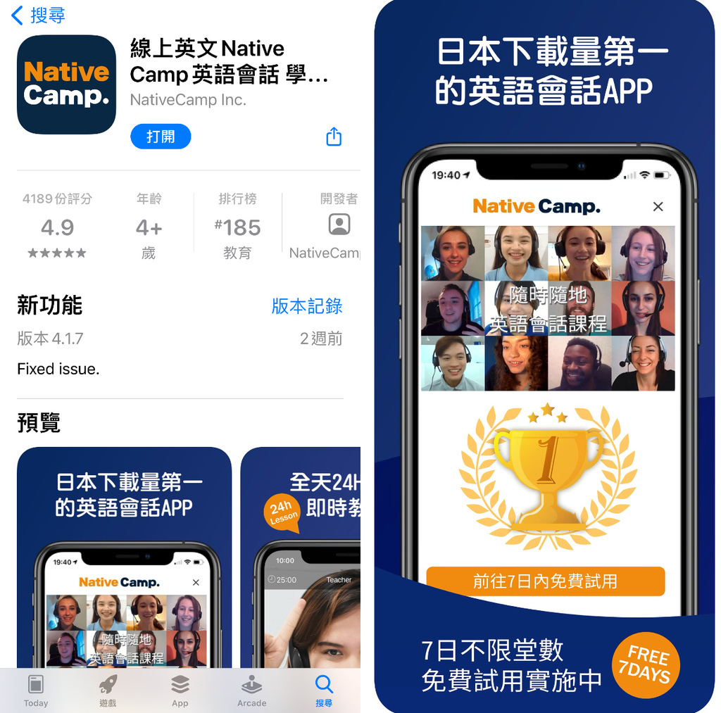 統整一下【Native Camp. 】的七大特色: