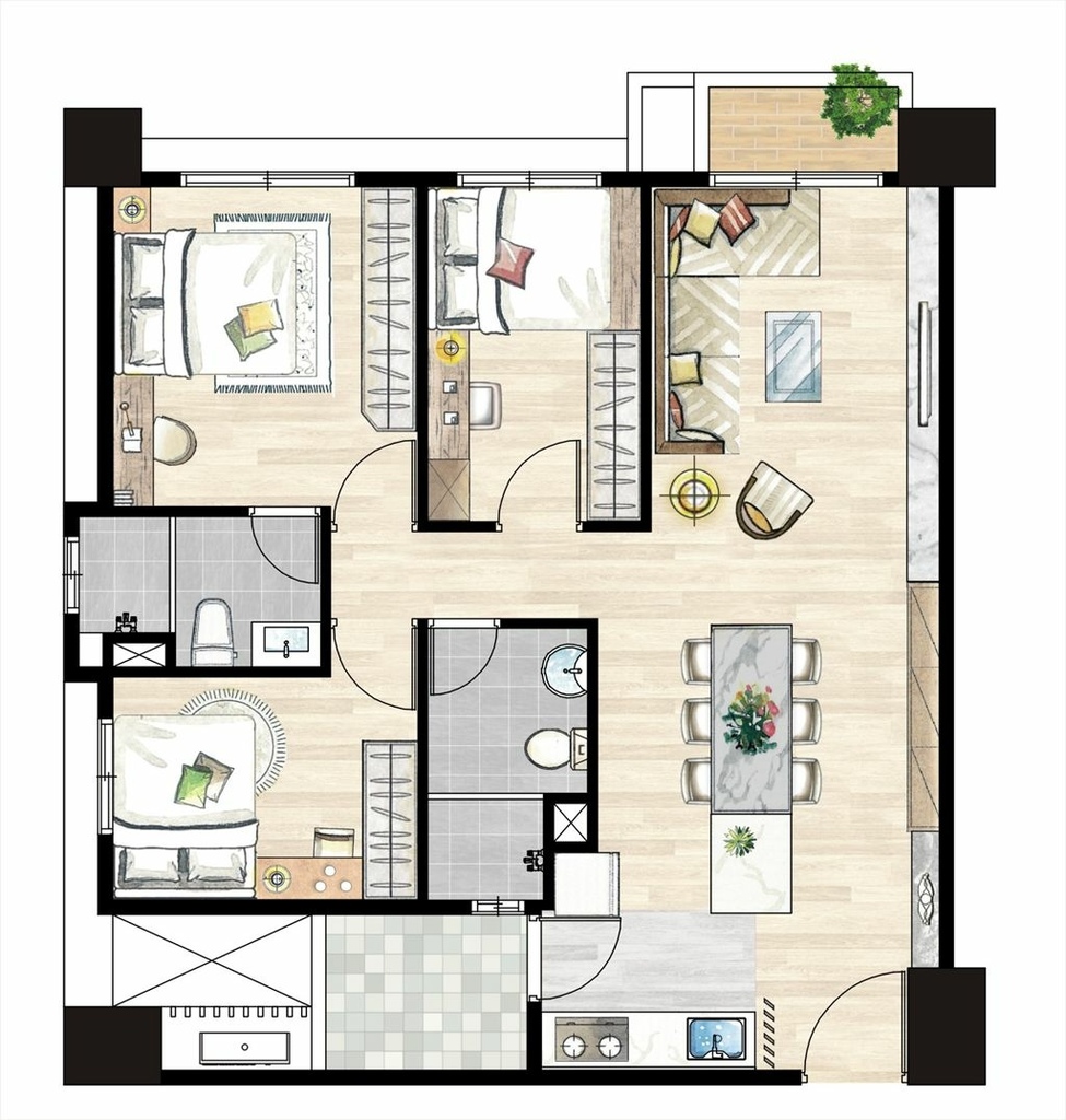 3房只有26戶,開放銷售後一定會很熱門,有需要的真的要搶先來看,3房雖然沒有樣品屋,但有VR實景可以看