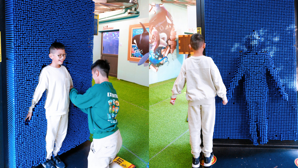 不想額外付費進入球池玩樂的話,一旁有免費的創意球牆可以玩,小朋友們可以發揮創意拼出自己的圖案。