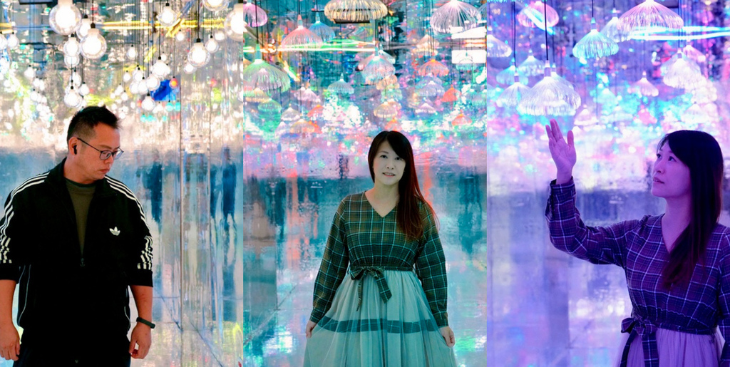 進入二館迎面而來的是幻彩光境,有燈泡及水母裝置,燈光顏色還會一直變化,可以拍出專屬自己的網美照。