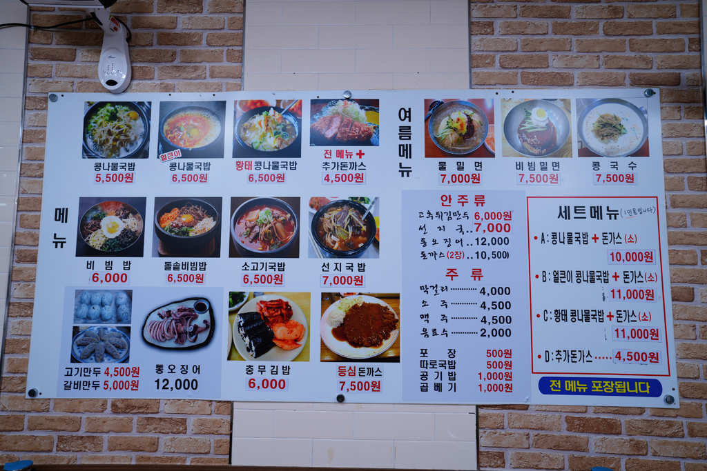 全州豆芽湯飯(전주 콩나물국밥)菜單及價格,還好有圖片對照,不然完全不知道是寫什麼,韓文真的很難懂啊。