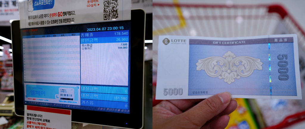 樂天超市旁邊就是樂天百貨,地鐵可以直通百貨,但我們抵達時間較晚樂天百貨已經休息了,我們就在超市裡盡情補貨。