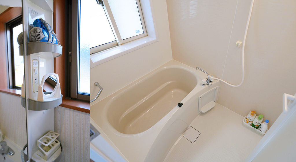 空間不大但設備齊全,也有浴缸夜晚睡前可以泡個舒適的澡,洗沐浴乳是大瓶的,環保也方便使用。