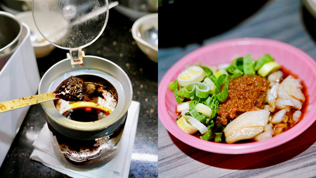 火鍋醬料部分除了常見的沾料外,還有蒜蓉醬、辣豆瓣、辣椒醬油、洋蔥碎以及推薦敢吃辣必加的特製辣醬,香辣過癮。