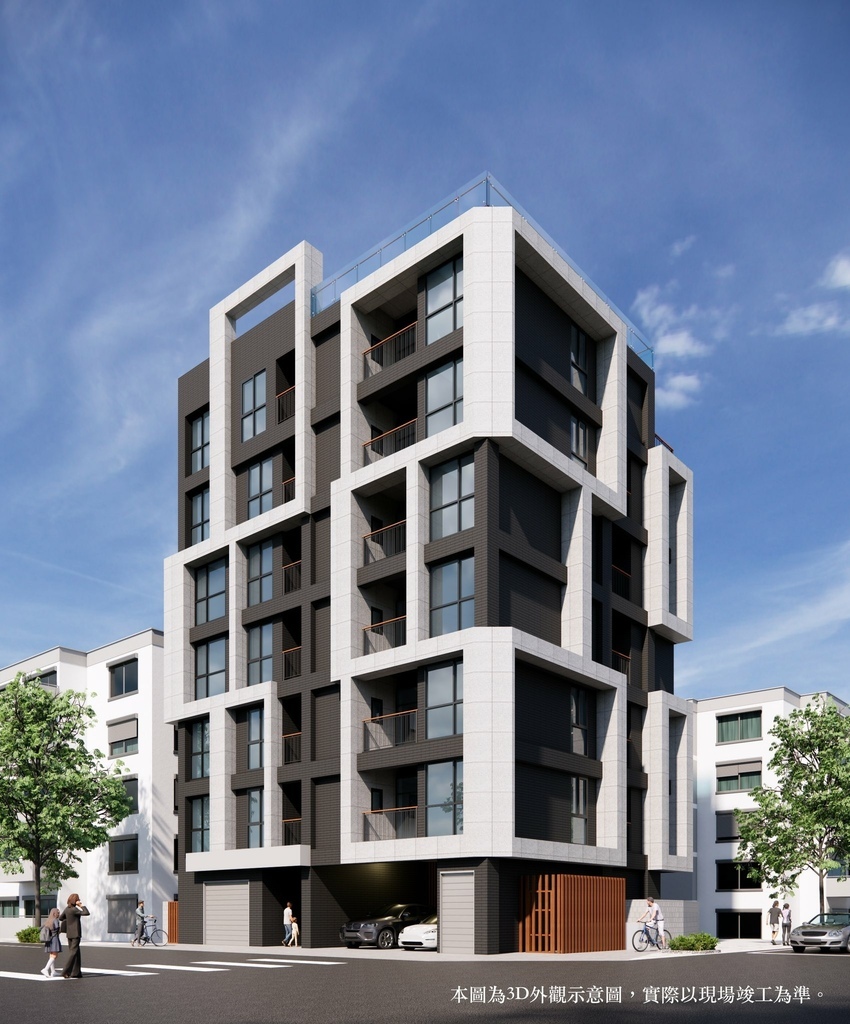基地面積111.92坪,建蔽率49.54%、公設比僅約29.9%,樓層規劃為地上7層、地下1層,共規劃18戶住家與8個平面式車位,出入單純、環境清幽,居住品質優異。