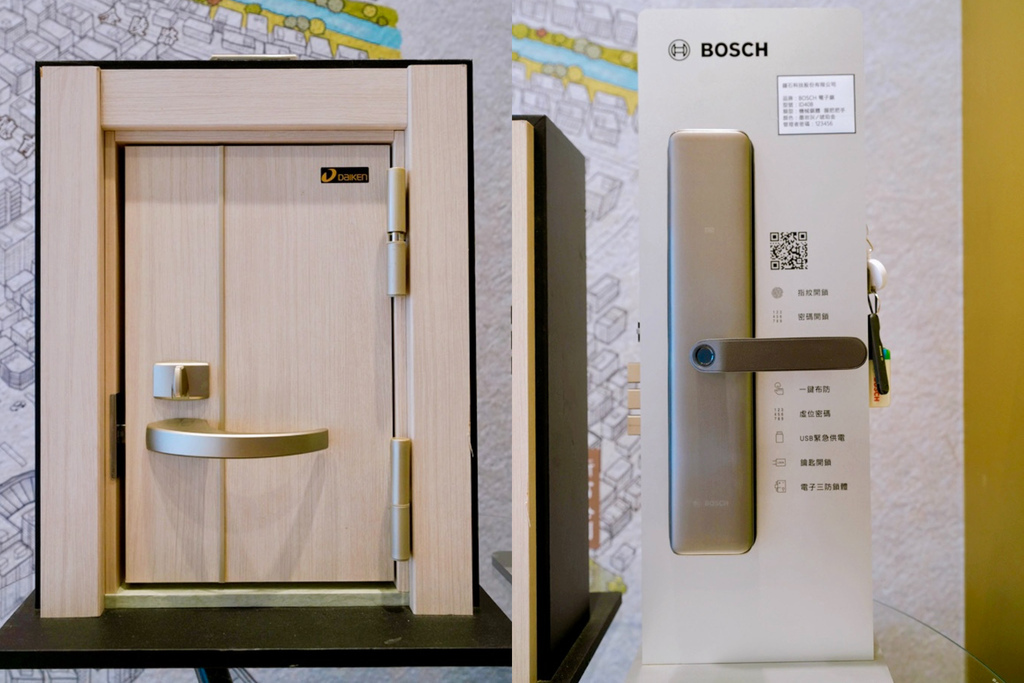 • Bosch 四合一電子鎖:指紋、密碼、磁卡、鑰匙整合,安全守護居家。