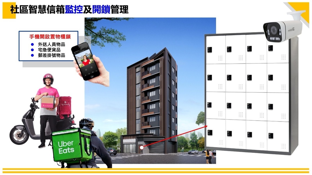 本案未來採遠端智慧門禁,支援手機App遠端開門與人臉辨識進出,安全與便利性兼具。另規劃智慧郵箱系統(類似i郵箱),住戶可透過手機即時確認投遞資訊,遠端開啟郵箱,即使沒有管理員,也能輕鬆收取包裹。