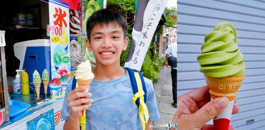 吃飽後,我們繼續往鐮倉大佛前進,途中經過賣冰淇淋的小店,我們牛奶及抹茶口味各買了一支。