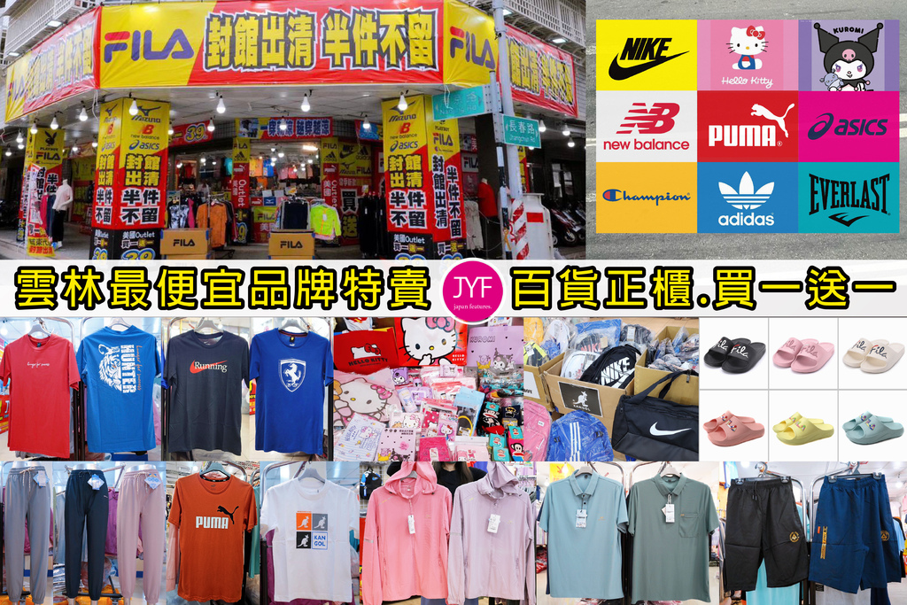 無論是想找便宜實穿的涼感服飾?想撿到運動大牌超殺優惠?還想順便帶些可愛的正版卡通授權小物?現在就出發到雲林斗六【JYF品牌聯合特賣會】,超值優惠錯過可惜!