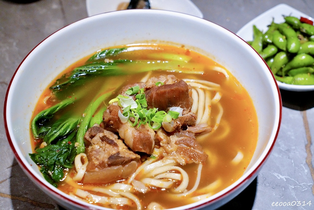 湯頭帶有花椒麻香與骨肉鮮甜,喝起來香麻回甘。骨肉燉煮至軟嫩不柴,搭配滑順麵條,份量十足,吃得非常過癮。