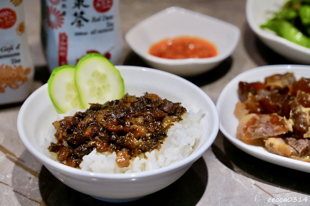 白飯上鋪滿梅乾菜滷肉,油潤帶甜,鹹香交織得恰到好處,粒粒分明的白飯瞬間被滷汁包裹,忍不住大口扒飯。