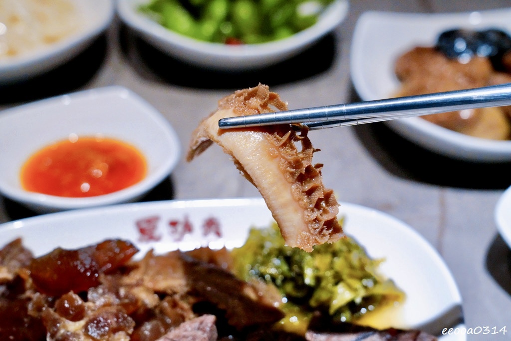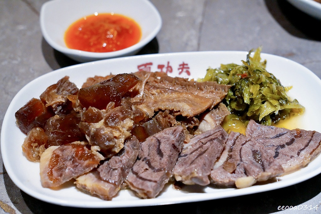 牛腱紮實帶嚼勁、牛肚脆口彈牙、牛筋Q彈富含膠質,三種不同口感一次滿足,搭配酸菜更添風味。