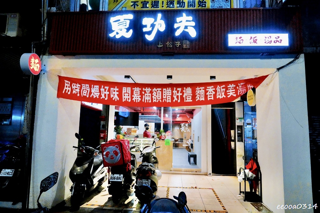 夏功夫位於松山區光復北路上,從捷運南京三民站步行約6分鐘即可抵達。門口掛著紅色布條,開幕期間還有滿額贈好禮活動,非常吸睛。