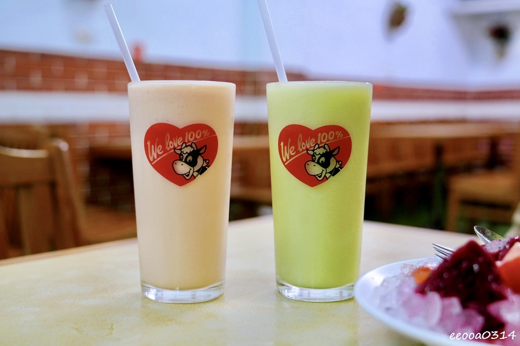 很復古風的玻璃杯,酪梨牛奶居然只要55元,真的很平價。兩杯果汁入口濃郁香甜,水果的清香與牛奶的順滑融合,冰涼口感讓人喝一口就停不下來。