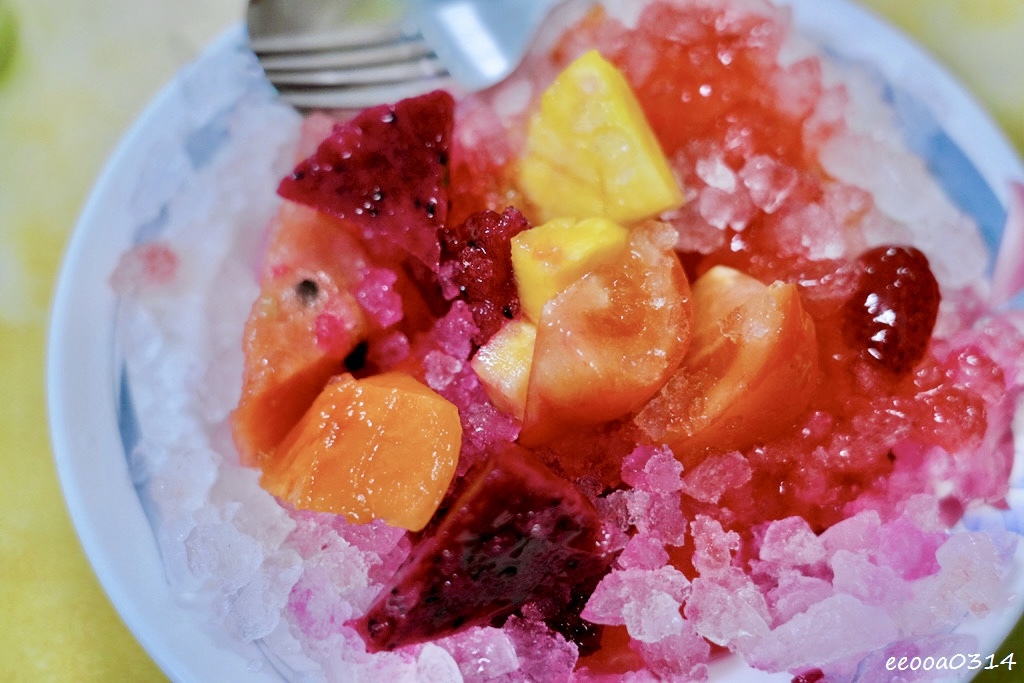 滿滿的繽紛水果,像是火龍果、鳳梨、木瓜、番茄、西瓜等等,每一口都有不同的驚喜。細碎的剉冰搭配水果的鮮甜,既消暑又有滿足感,是夏天很受歡迎的選擇。