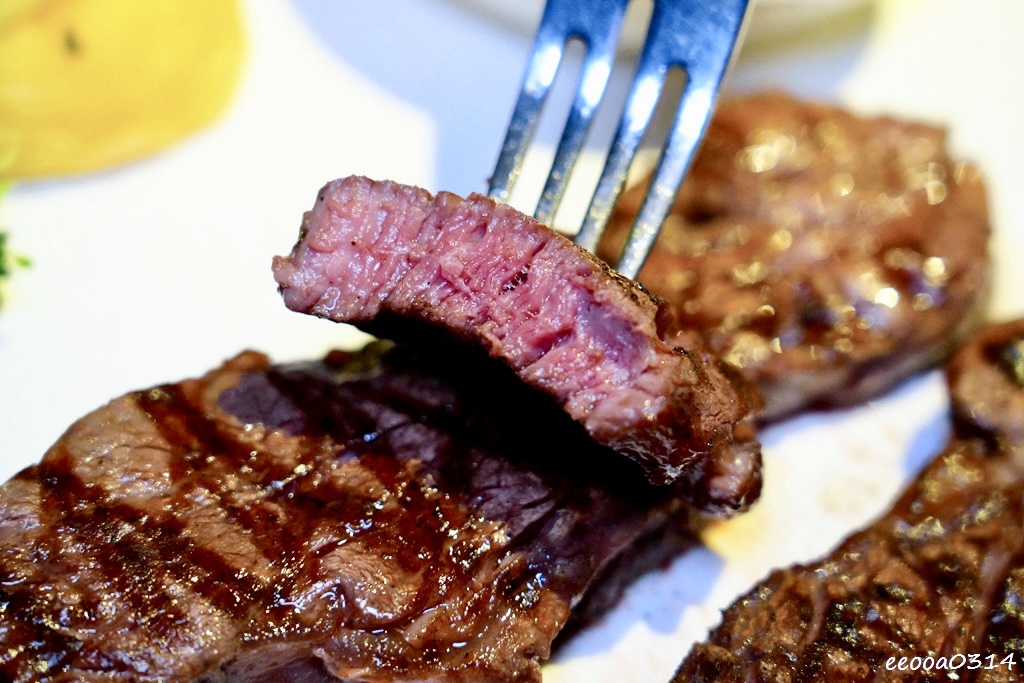 餐廳以牛排為核心,選用高品質牛肉(如美國Prime級肋眼、紐約客、無骨牛小排等),每款牛排皆以直火炭烤,菜單上還標示建議熟度與口感(嫩度、嚼勁、油花量)。不吃牛的朋友,也有其他肉類、沙拉及炸物小點可選。