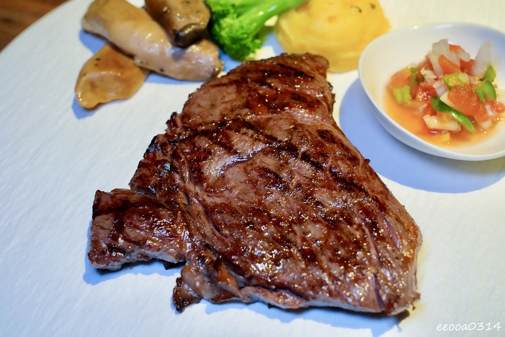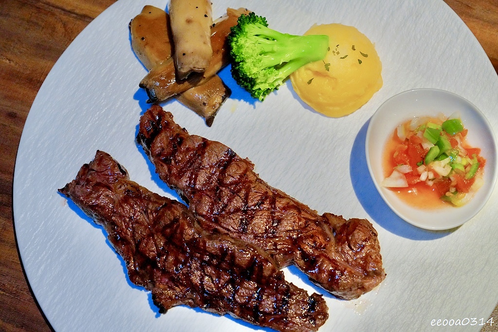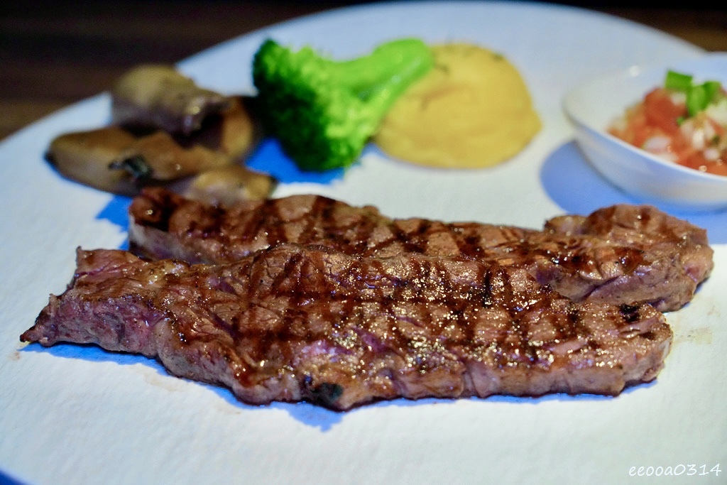 這次我們點了兩款主打餐點:A5日本和牛臀心 8oz與老饕牛排 8oz。主菜搭配馬鈴薯泥、莎莎醬及蔬菜,平衡口感、解膩又美味。