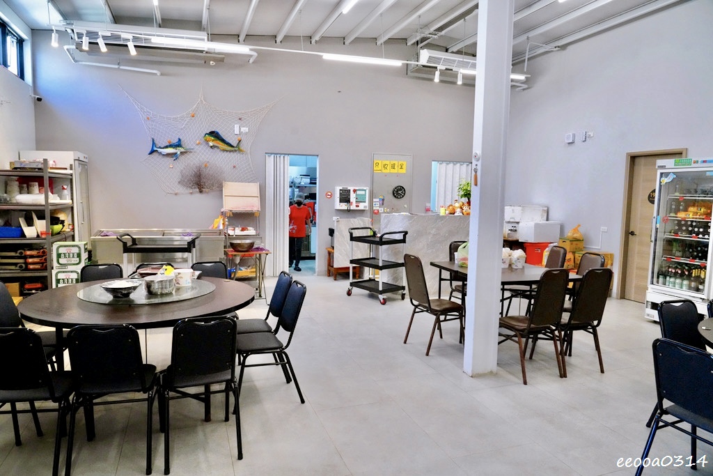 推門而入,餐廳內部明亮寬敞,以大圓桌為主,很適合家人或朋友一同圍坐。挑高設計讓空間不會感到壓迫,牆上點綴著海洋風裝飾,氛圍輕鬆自在。整體環境乾淨整齊,給人舒服的用餐感受。